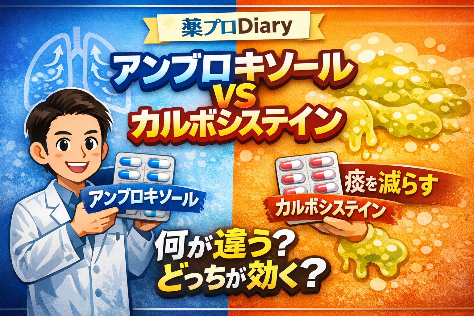 今回のテーマは、去痰薬(たん切り薬)の二大巨頭、「アンブロキソール(ムコソルバン)」と「カルボシステイン(ムコダイン)」です。
